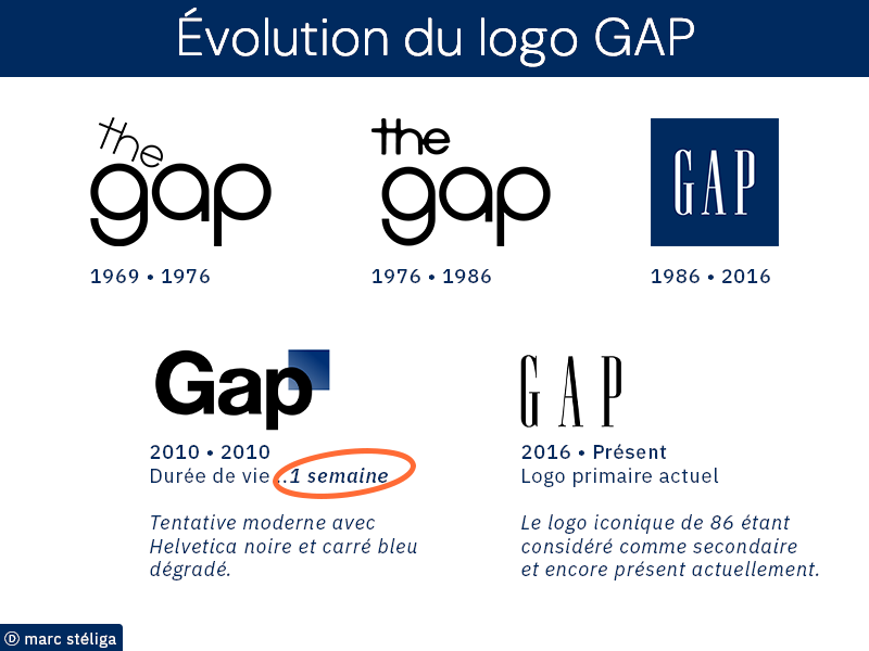 L’erreur est de renier cet héritage, quel qu’il soit. Le fiasco du logo Gap en 2010 en est la preuve.
